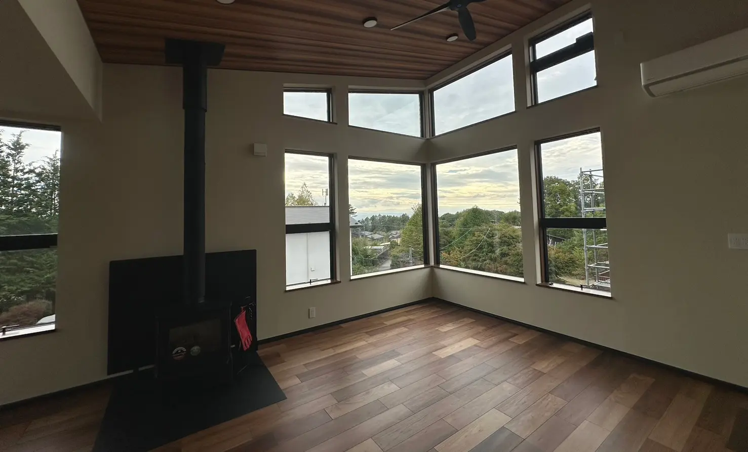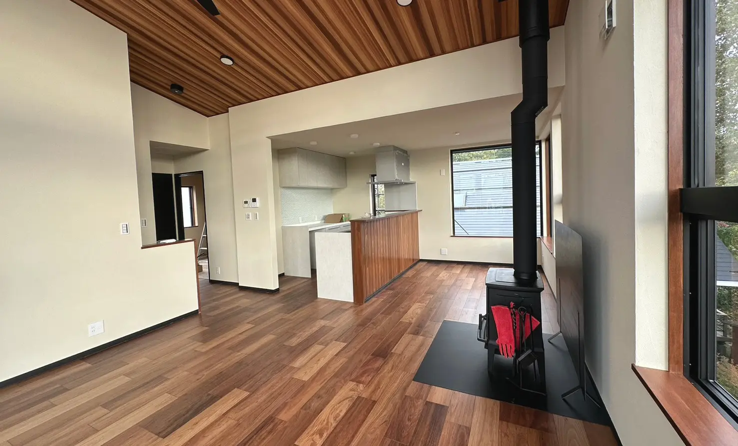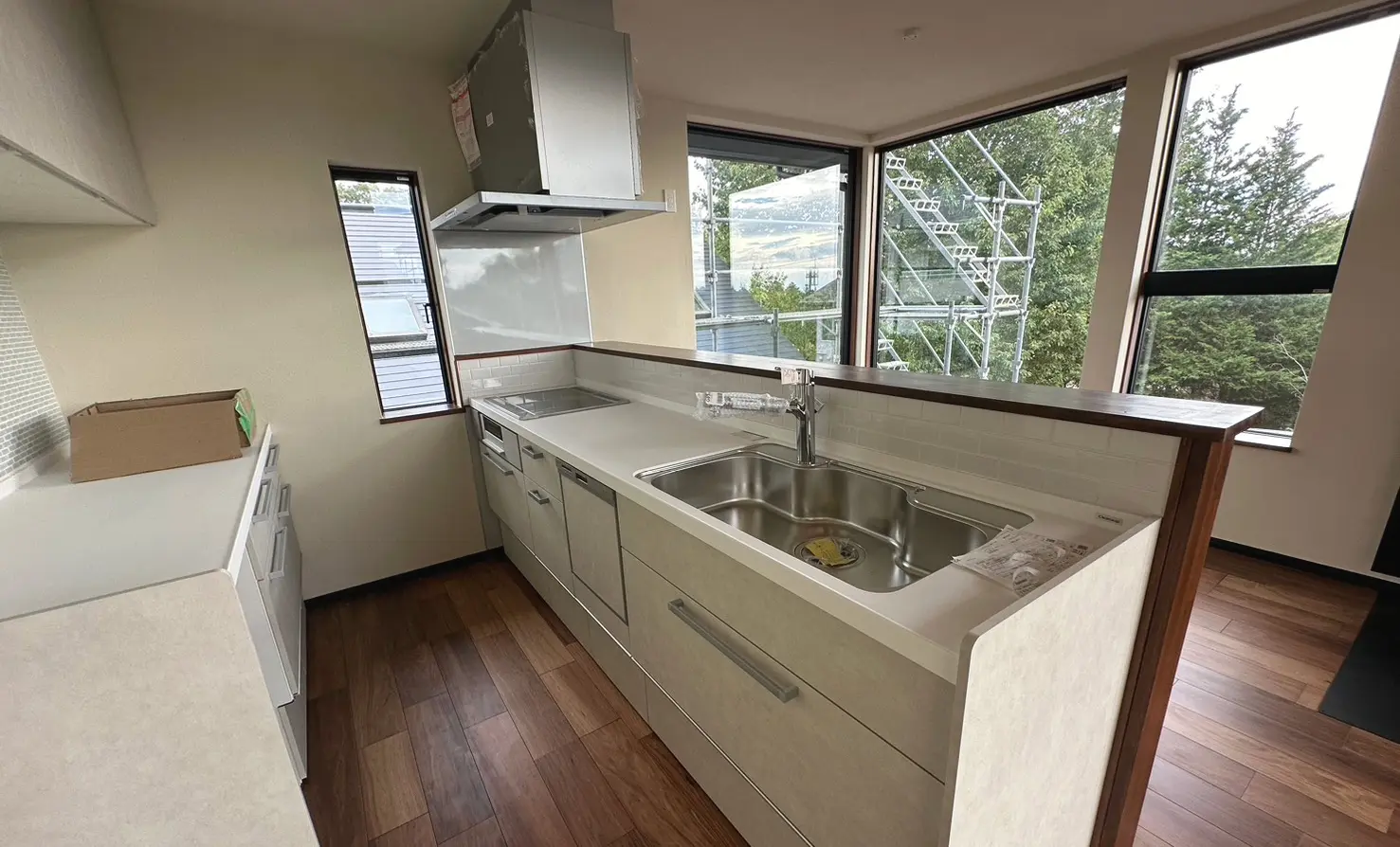 信濃追分駅から車で6分。追分宿にも近く、閑静な住宅地の物件です。南西側に大きな窓を設けた2階からは広大な空が見えるリビングです。建物は高台にあり、周りの目線も気になりません。