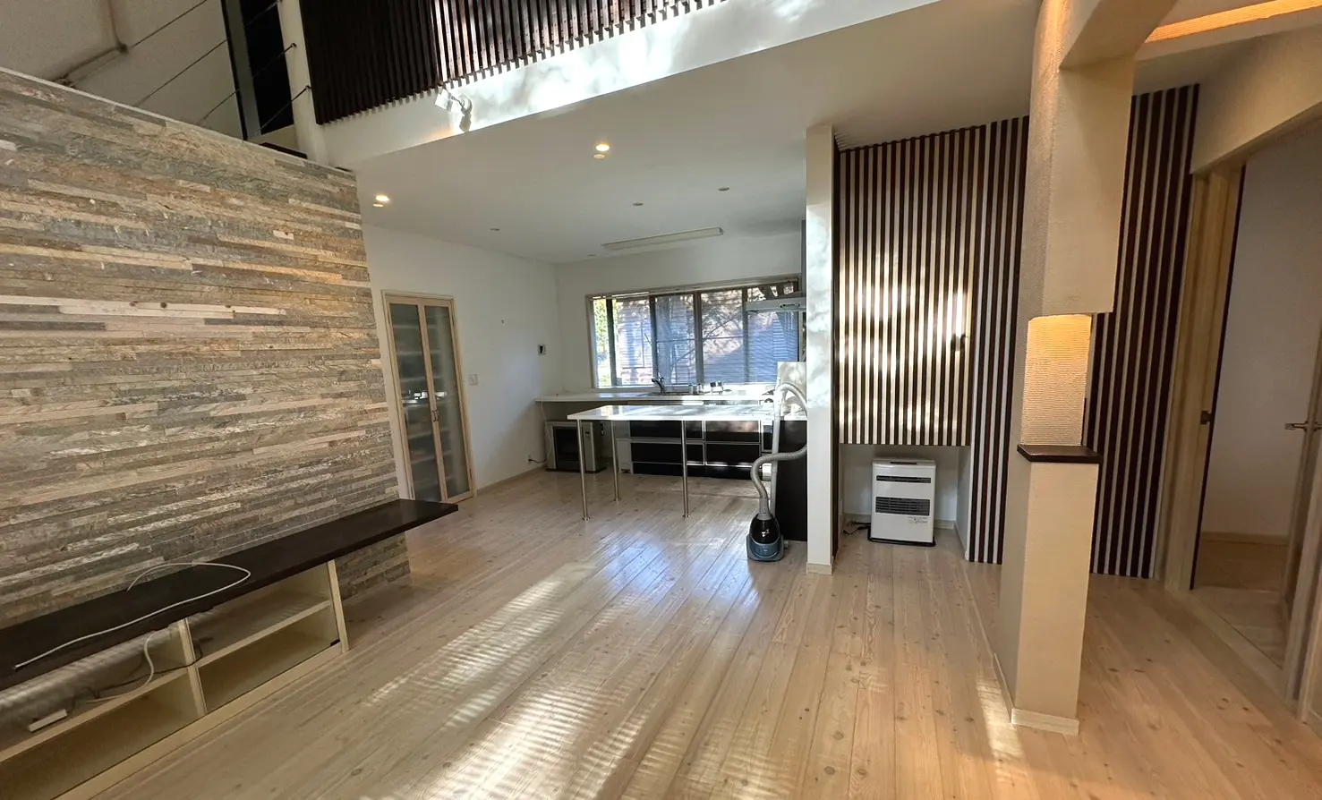 千ヶ滝西区1000m林道沿いの敷地201坪の別荘です。建物は2006年10月に室内フルリフォームしているため程度は良好。間取りは3LDK+ロフト、吹き抜けがあり、開放感のあるリビングです。